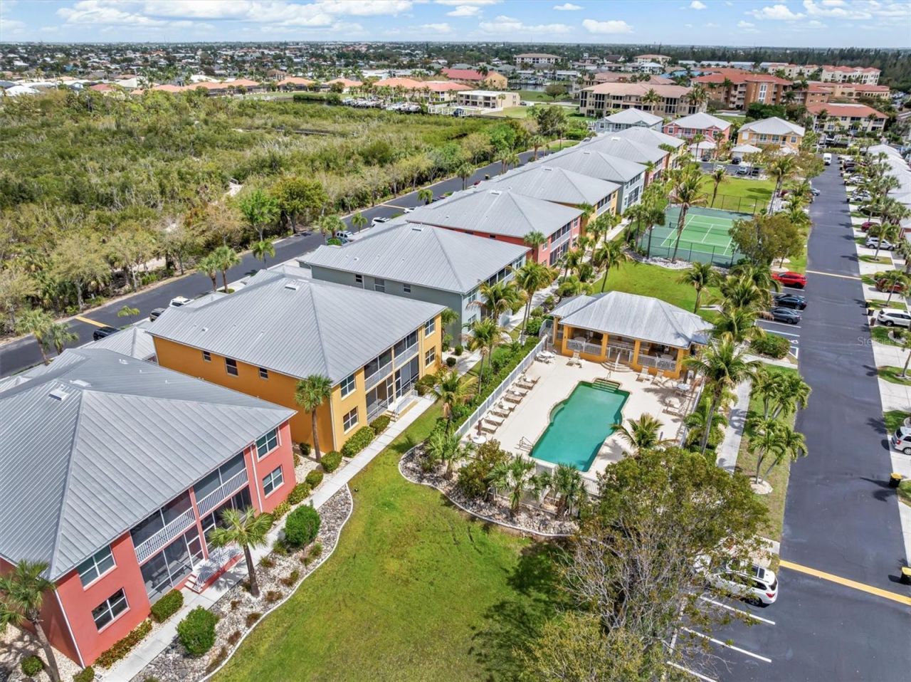 You'll love this FIRST FLOOR CONDO in the beautiful gated community of 'Clipper Cove, located in the heart of Punta Gorda, FL! This inviting residence offers 3 BEDROOMS PLUS AN OFFICE/DEN and a 1-car garage, giving plenty of flexible space for work, hobbies, or guests. The first-floor location adds everyday convenience-no climbing stairs while carrying groceries or shopping bags. The layout feels open, bright, and easy to enjoy, creating a comfortable place to relax and recharge. Clipper Cove is a gated waterfront community with amenities designed for an active Florida lifestyle. Residents enjoy a sparkling community pool and tennis courts just steps from this unit, making it simple to enjoy the outdoors any day of the week. The location also offers easy access to a city-maintained nature preserve with walking and biking trails, perfect for fresh air and peaceful views. The setting blends privacy, recreation, and natural beauty, all within a well-kept neighborhood. Inside the condo, the primary suite offers comfort and privacy. It features its own entrance to the covered and screened lanai, creating a quiet place to enjoy morning coffee or an evening breeze. The ensuite bathroom adds extra convenience and a private retreat feel. The kitchen is designed for both style and function, featuring granite countertops, stainless steel appliances, and a center island that provides extra prep space and room for casual dining. The open design connects easily with the living areas, making the home feel welcoming and bright. Accessibility and thoughtful details add even more value. The home is handicap accessible with wide doorways and no carpet, offering a clean, low-maintenance design throughout. Hard flooring helps keep the space fresh and easy to maintain while creating a modern look that fits many d?cor styles. Living in Punta Gorda means having access to a wide range of activities and attractions. The area is known for boating, marinas, shopping, tennis courts, golf courses, pickleball, bike trails, a dog park, and excellent restaurants. The city also features its own convenient airport, making travel easy. This property is located close to schools, shopping, and dining, placing everyday essentials just minutes away. A perfect place to call home and this is the perfect condo. Schedule your private tour today and experience the comfort, location, and lifestyle this home offers.
