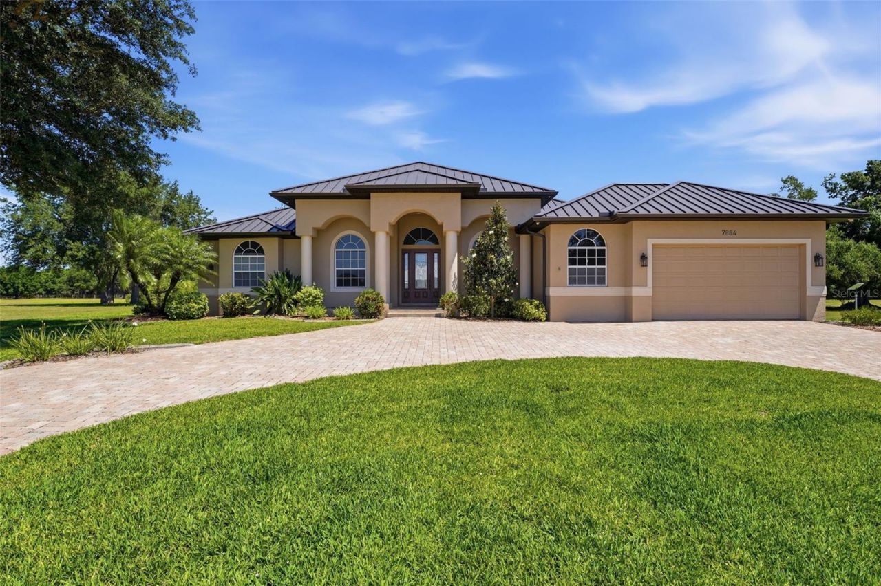 One or more photo(s) has been virtually staged. Welcome to this stunning Mediterranean-style home with a heated saltwater pool nestled on a sprawling lot on a quiet cul-de-sac street perfectly positioned between Arcadia, Port Charlotte, and Punta Gorda with no HOA and wide-open surroundings that are increasingly hard to find. From the moment you arrive, the grand columned portico, arched windows, rich stucco exterior, and circular paver driveway set the tone for the craftsmanship and character found throughout. Step inside through the leaded glass front door and you are immediately greeted by soaring ceilings, an intricate compass rose tile medallion inlaid in the foyer floor, and a series of elegant arched doorways that draw you deeper into the home. The layout is thoughtfully designed with both a formal living room and a spacious family room. The family room features a tray ceiling, built-in shelving, ceiling fan, and sliding glass doors that open directly to the pool and lanai, blending indoor and outdoor living effortlessly. The kitchen is a true centerpiece, expansive at over 26 feet deep, boasting rich raised-panel cabinetry stacked to the vaulted ceiling, granite countertops, a large center island, a curved breakfast bar peninsula with seating for four, stainless steel appliances including double wall ovens and a French door refrigerator, pendant lighting, and a tile backsplash. The kitchen flows seamlessly into the dining area and family room, making it the natural gathering point of the home. The primary suite features French doors opening directly to the pool area and a fully renovated en-suite bathroom completed in 2026. The bath includes floor-to-ceiling Carrara marble-look tile in the walk-in shower with a mosaic tile floor and recessed niche, a freestanding soaking tub centered beneath an arched window, a dual curved vanity with white shaker cabinetry and quartz countertops, an angled mirror wall, wood-look porcelain tile flooring, and a separate vanity station. Two additional bedrooms are well-sized and share a full guest bath. The oversized screened lanai stretches over 32 feet wide with a covered outdoor living area and ceiling fan, all flowing out to the heated saltwater pool that has been meticulously maintained and upgraded. Recent updates in the past few years include a pool motor (2022), pool heater (2023), pool pump (2024), salt system (2025), and water heater (2023). Beyond the enclosure, the property opens to lush green space with mature oaks and sweeping views of the Paradise Golf Course along the Peace River corridor. Additional highlights include a metal roof (2022), AC (2021), whole-home carbon water filter (2026), RO water system at the kitchen (2023), dedicated office, utility room, and an extended two-car garage with additional space for a golf cart, making everyday life that much easier. Positioned just off US-17 near Fort Ogden with convenient access to Port Charlotte, Punta Gorda, and Punta Gorda Airport. **THIS PROPERTY QUALIFIES FOR A 1% LENDER INCENTIVE IF USING PREFERRED LENDER. INQUIRE FOR MORE DETAILS.**